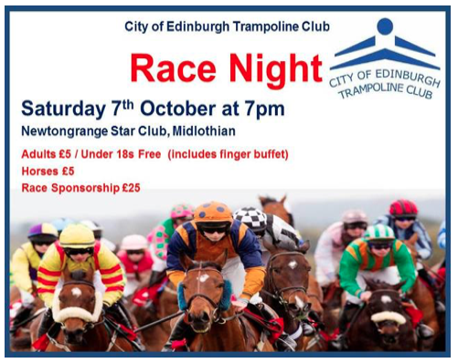 CETC are holding a Race Night for members, family and friends, on Saturday 7 October 2017. The event will be held at the Newtongrange Star Football Social Club. Tickets are now on sale, and available from members of the Fundraising Group and coaches.